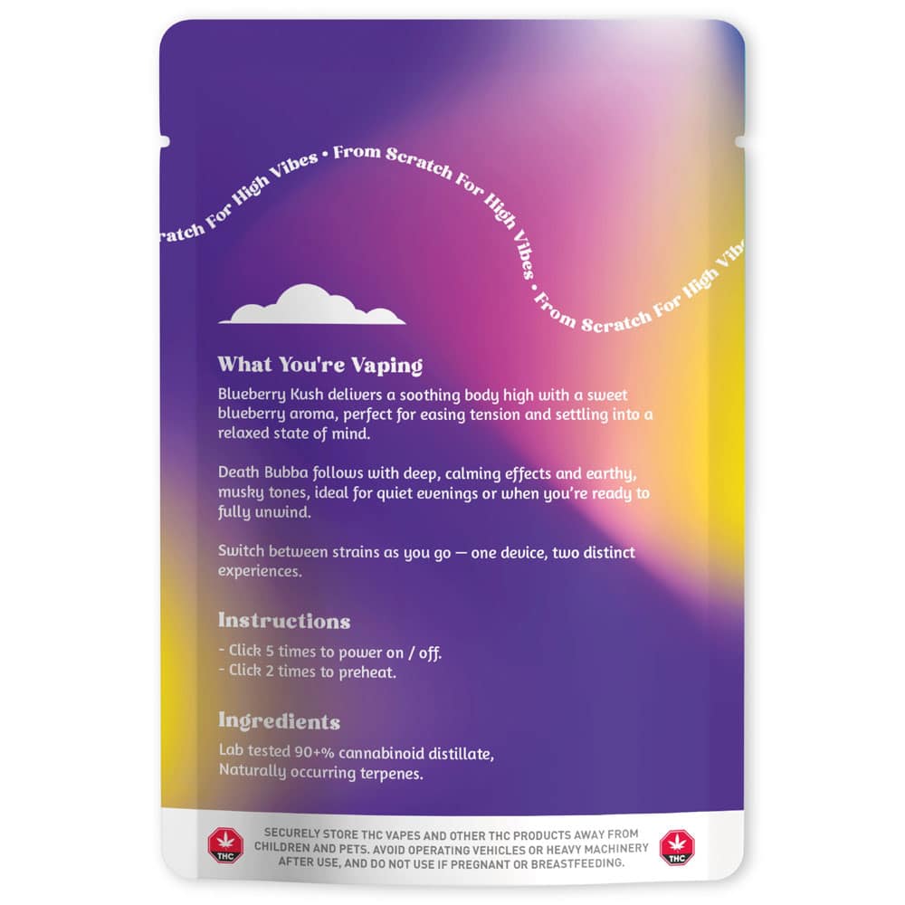 I’m really impressed with how easy it is to switch between the two strains. It feels like two vapes in one. Whether I want to mellow out or get serious couch-lock, this vape delivers. Super convenient and discreet, too!