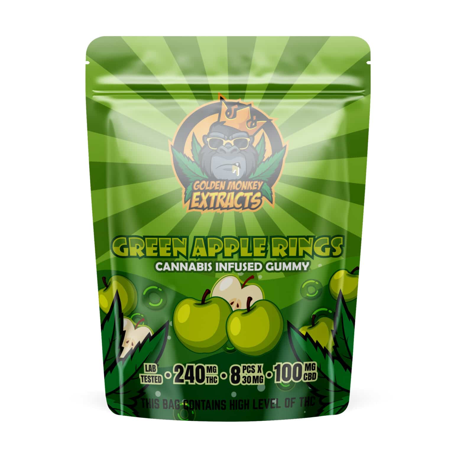 Golden Monkey Extracts THC:CBD Gummy – Green Apple Rings Golden Monkey Extracts –...