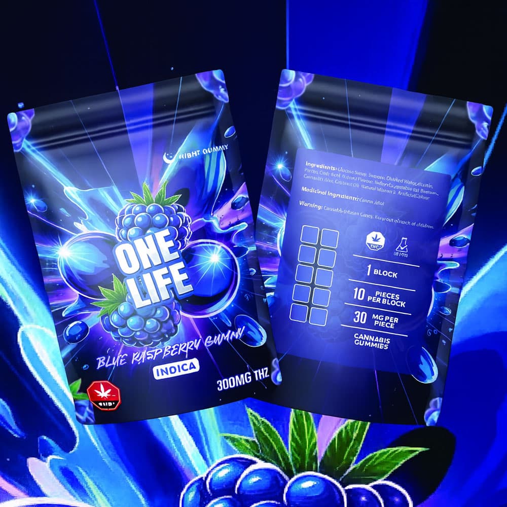 One Life Edibles - Blue Raspberry Gummy - 300mg THC (Indica)