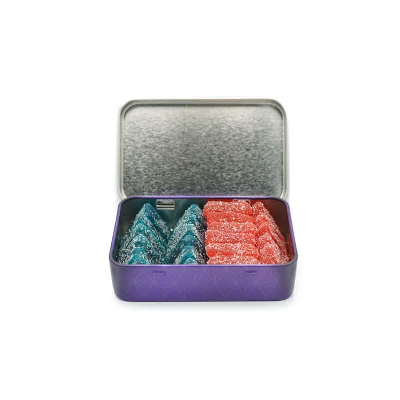 Proper Extracts maintains its signature style with sleek, triangle-shaped gummies housed in a resealable, travel-friendly tin. These brightly colored edibles are not only visually appealing but also easy to dose and discreet to carry — perfect for on-the-go cannabis enjoyment.