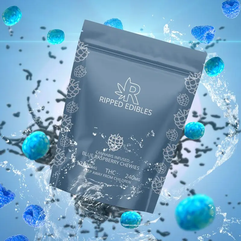 Buy Ripped Edibles – Chewies – Blue Raspberry 240mg THC Online at Wholesale Pricing: MSRP: $7.50 each