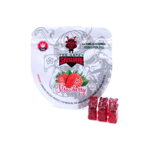 Strawberry Bear Bomb Gummies 150mg THC by The Green Samurai Edibles brings together bold flavour and precise dosing with the help of cutting-edge infusion technology. Each delicious, fruit-flavoured gummy bear contains 25mg of THC, offering a smooth and satisfying experience in every bite. Enjoy the mouthwatering taste of these juicy edibles and let The Green Samurai Strawberry Bear Bomb help you unwind, relax, and melt your stress away.